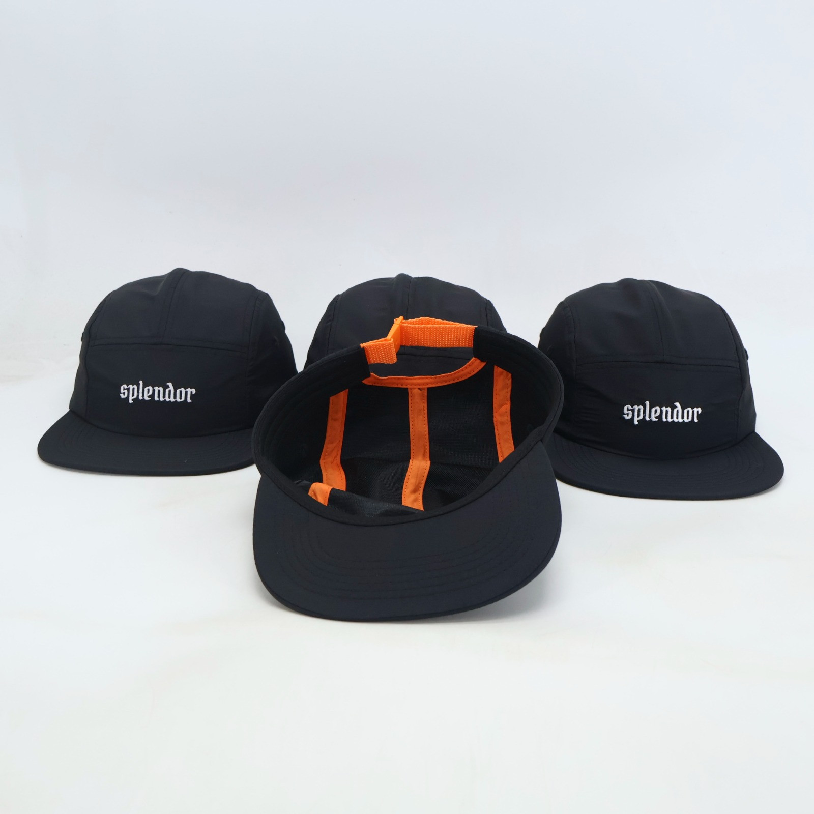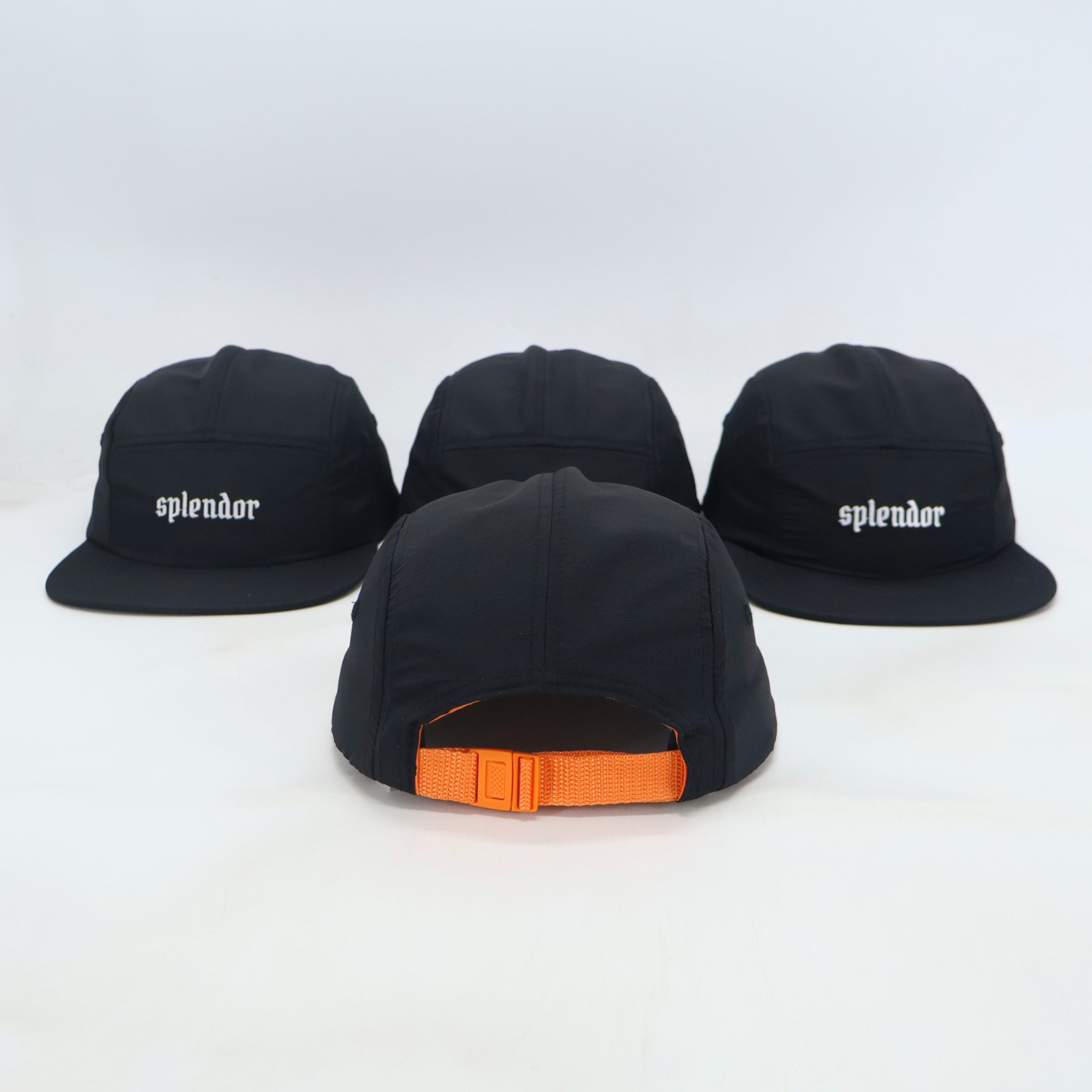 Klasyczny 5 panel wykonany z lekkiego i wygodnego nylonu, haft na froncie. Pasek i obszycie w kolorze pomarańczy.