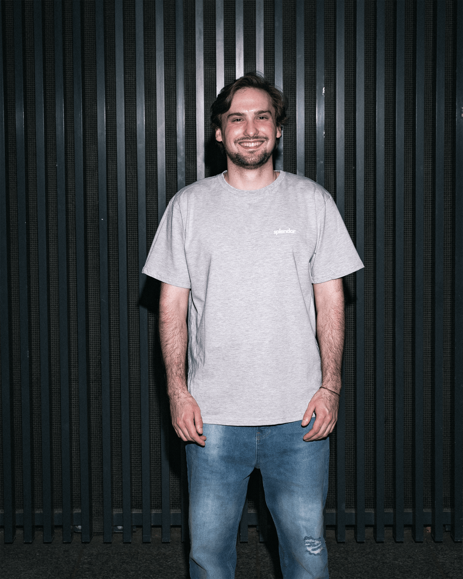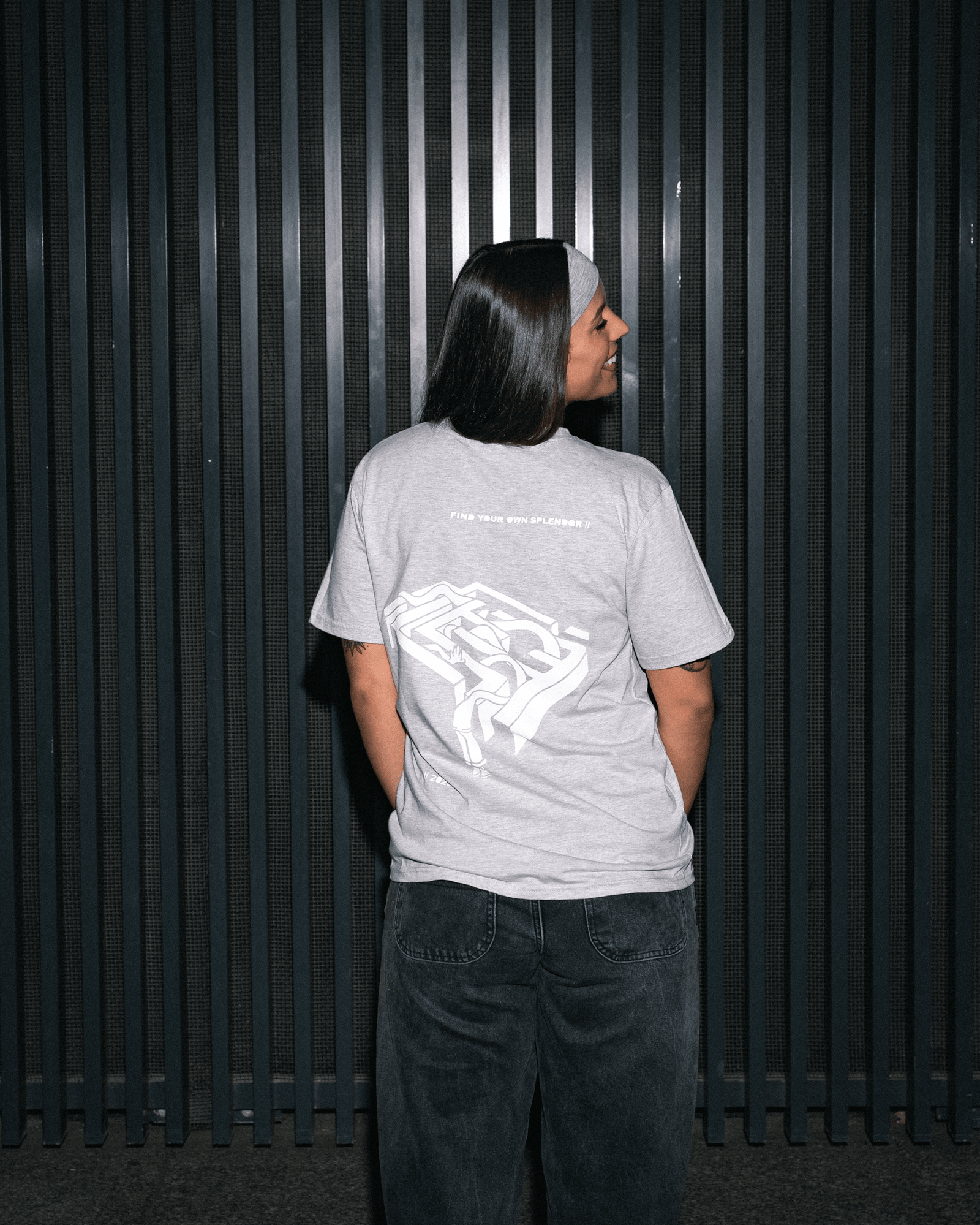 Klasyczna koszulka bawełniana uszyta w stylu oversize. Na piersi subtelny napis SPLENDOR, a na plecach grafika. Grafiki wykonane metodą sitodruku