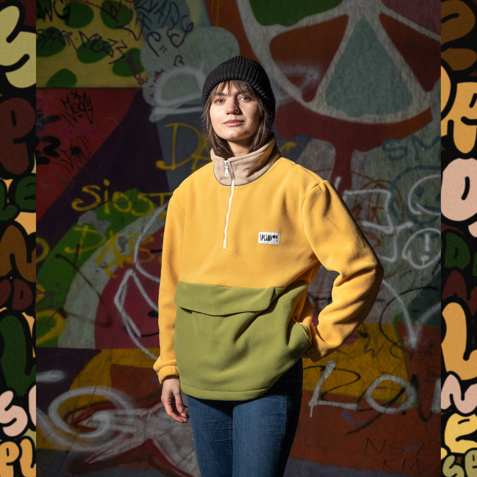 Gruba bluza polarowa typu kangurka. Posiada dużą zapinaną kieszeń pod klapą na brzuchu oraz dwie klasyczne kieszenie boczne. Ściągacze na rękawkach oraz regulowany ściągacz u dołu od wewnętrznej strony. Kołnież ze stójką zapinany na zamek, oddzielony od tułowia odblaskowym paskiem. Na plecach haft FULL-TIME EXPLORER.