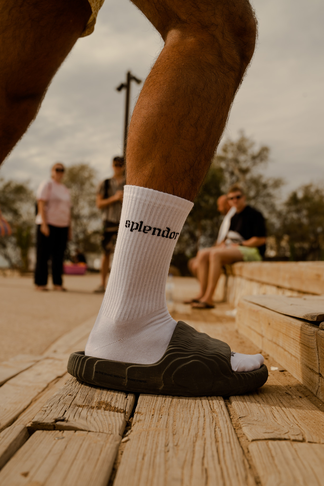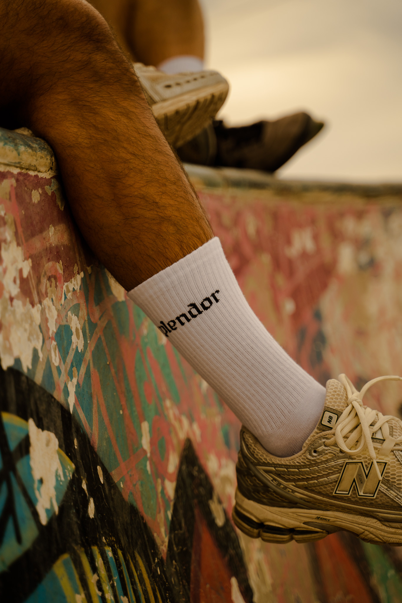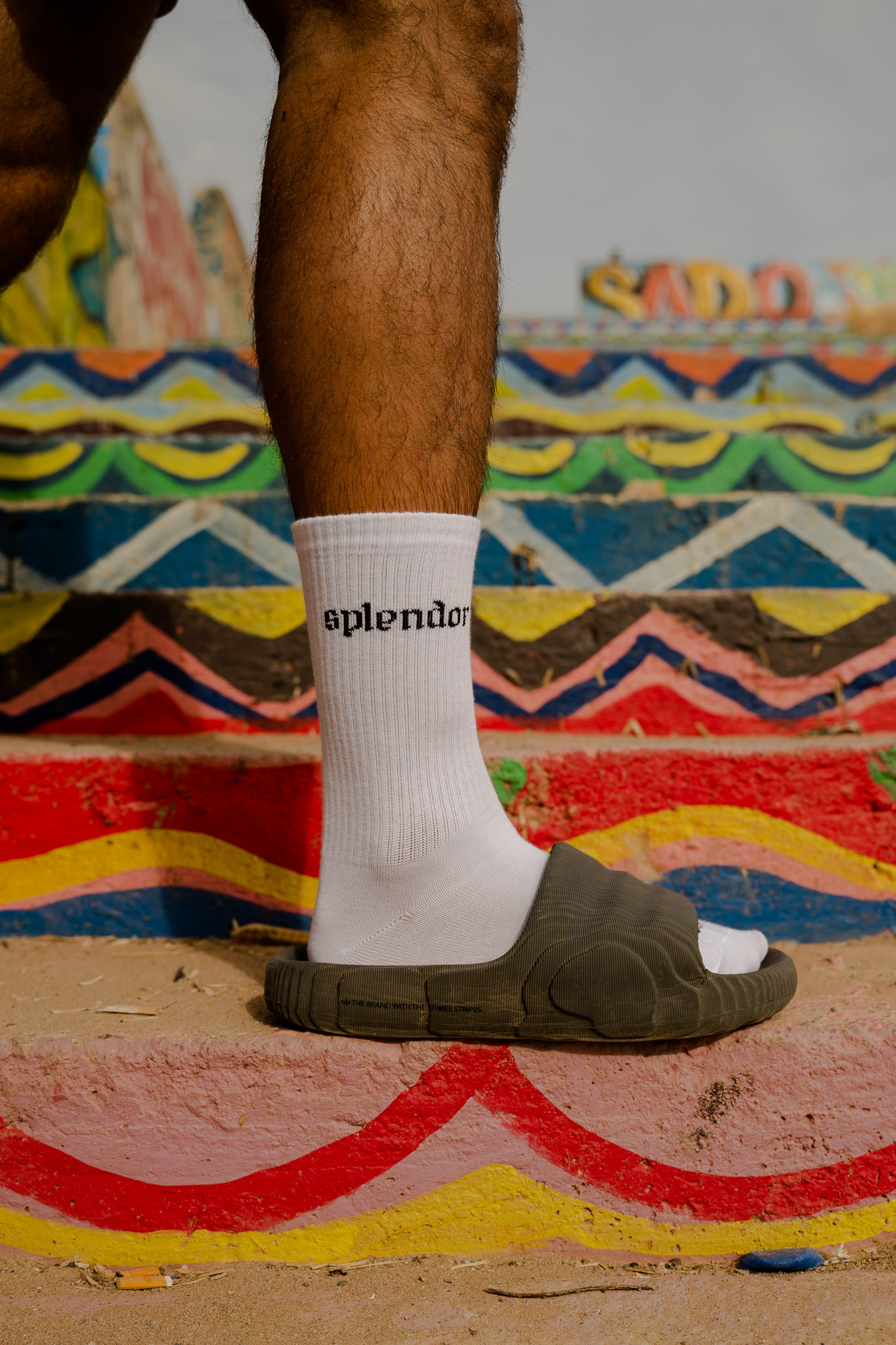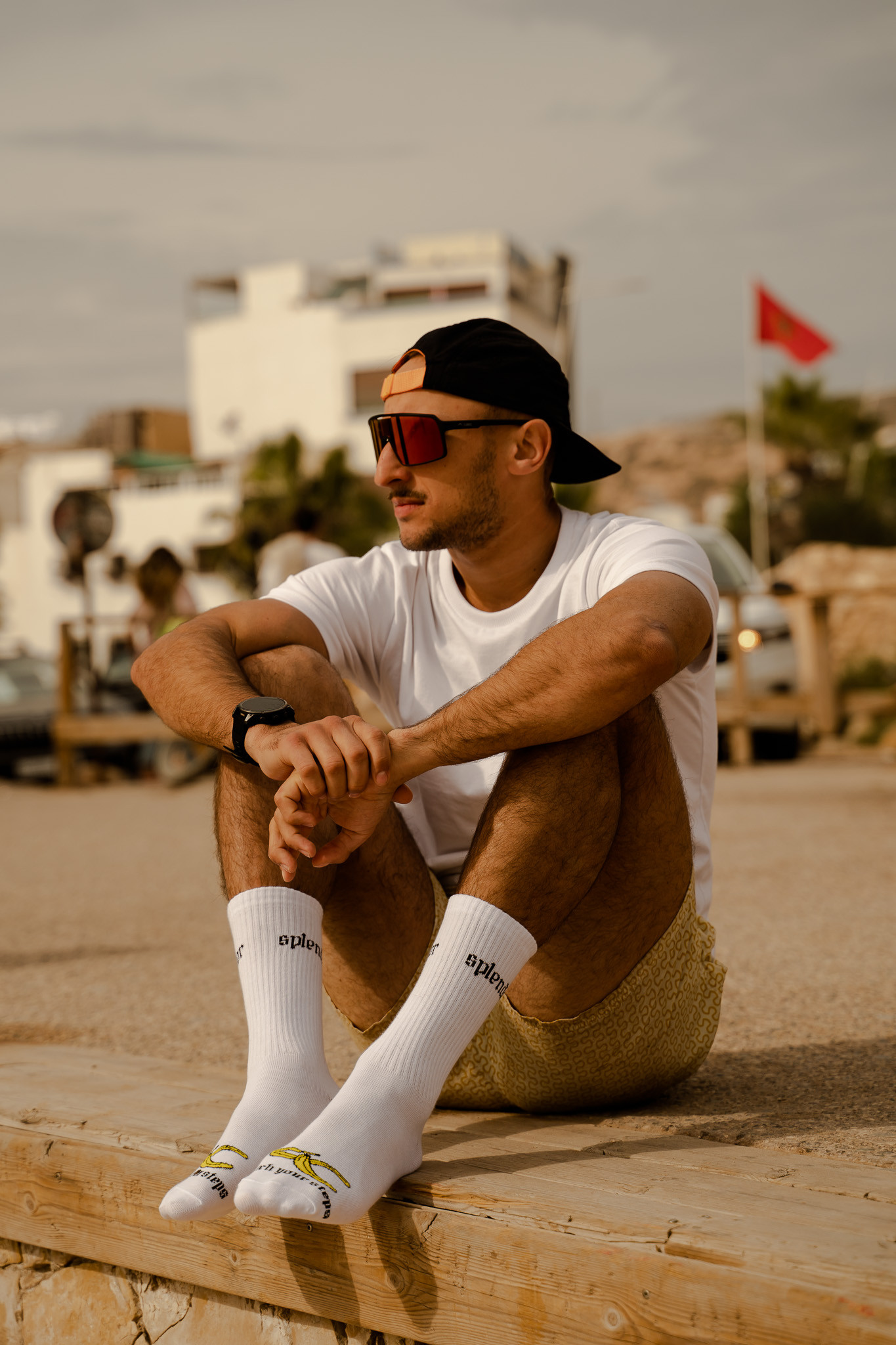 Bawełniane skarpetki SPLENDOR z charakterystycznym detalem. Na palcach umieszczona grafika banana oraz napis ostrzegawczy „WATCH YOUR STEPS”, które nadają całości wyrazistego charakteru.